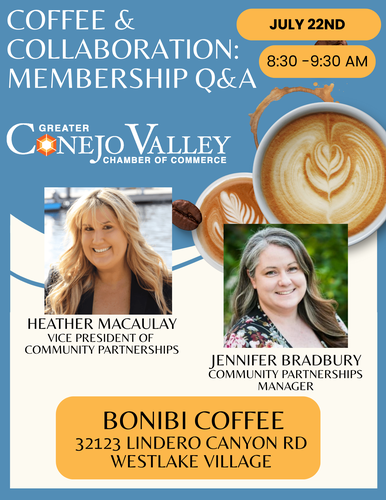 If you have recently joined the Chamber or would like to know more about what the Chamber can offer, join Heather Macaulay, Vice President of Community Partnerships and Jennifer Bradbury Administrative & Community Coordinator on July 22nd at 8:30 a.m. at Bonibi Coffee.